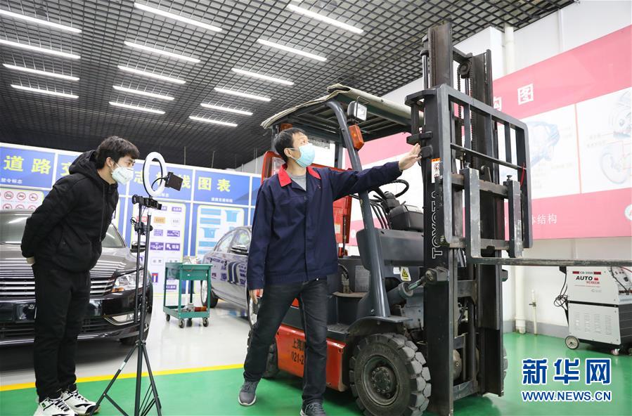 3月4日,職教城內(nèi)的鞍山市交通運(yùn)輸學(xué)校的楊永祥老師為學(xué)生進(jìn)行物流叉車實(shí)訓(xùn)網(wǎng)絡(luò)授課。遼寧省鞍山市職教城內(nèi)的各類職業(yè)教育學(xué)校從3月2日恢復(fù)網(wǎng)絡(luò)授課以來,教師們?cè)O(shè)置了豐富多彩的課程,提高1萬余名學(xué)生線上學(xué)習(xí)的積極性。新華社記者 姚劍鋒 攝