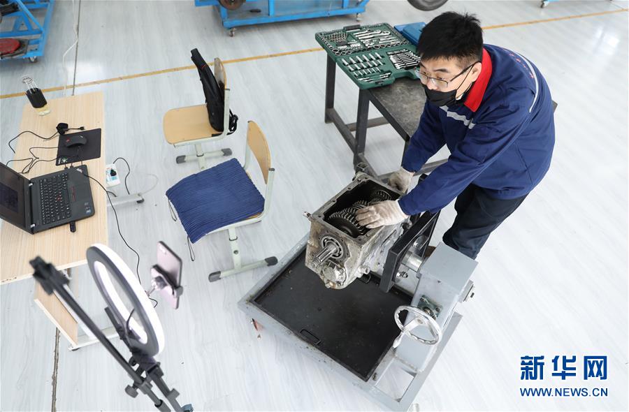 3月4日,職教城內(nèi)的鞍山市交通運(yùn)輸學(xué)校的高峰老師為學(xué)生進(jìn)行變速器檢修實(shí)訓(xùn)網(wǎng)絡(luò)授課。遼寧省鞍山市職教城內(nèi)的各類職業(yè)教育學(xué)校從3月2日恢復(fù)網(wǎng)絡(luò)授課以來,教師們?cè)O(shè)置了豐富多彩的課程,提高1萬余名學(xué)生線上學(xué)習(xí)的積極性。新華社記者姚劍鋒 攝