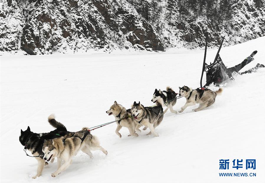 當(dāng)?shù)貢r間3月4日,俄羅斯克拉斯諾亞爾斯克,當(dāng)?shù)嘏e行10公里狗拉雪橇比賽。(圖片來源:視覺中國)