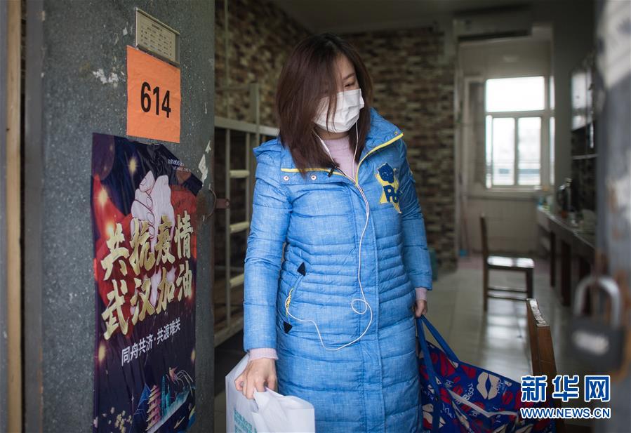 3月12日,黎婧收拾完行李,走出這間待了14天的房間。 3月12日,插畫師黎婧和84位病友離開自己居住的武漢軟件工程職業(yè)學院康復驛站,回到自己家中。他們都是治愈出院的新冠病毒肺炎患者,已經(jīng)在武漢軟件工程職業(yè)學院康復驛站進行了14天醫(yī)學觀察,達到醫(yī)學標準,成功解除隔離。他們由專車運送至所屬社區(qū)附近的集散點后,在社區(qū)工作人員的陪同下回家。 新華社記者 肖藝九 攝
