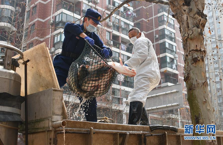 3月13日,一批運到武漢市硚口區(qū)華生漢口城市廣場社區(qū)的活魚正在卸貨分裝。當(dāng)日,首批100噸調(diào)配自湖北省咸寧市的活魚運抵武漢市硚口區(qū)11個街道下轄社區(qū)。咸寧是魚米之鄉(xiāng),水產(chǎn)資源豐富。此次戰(zhàn)疫咸寧得到了全國人民的支持,疫情得到良好控制。咸寧送魚,希望傳遞愛心,支持武漢早日戰(zhàn)勝疫情。新華社記者程敏攝