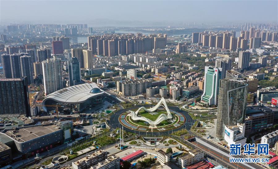 這是3月15日拍攝的武漢光谷廣場(chǎng)環(huán)島(無(wú)人機(jī)照片)。 3月15日,江城武漢天氣晴好,整個(gè)城市沐浴在和煦的春光中。 新華社記者 李賀 攝