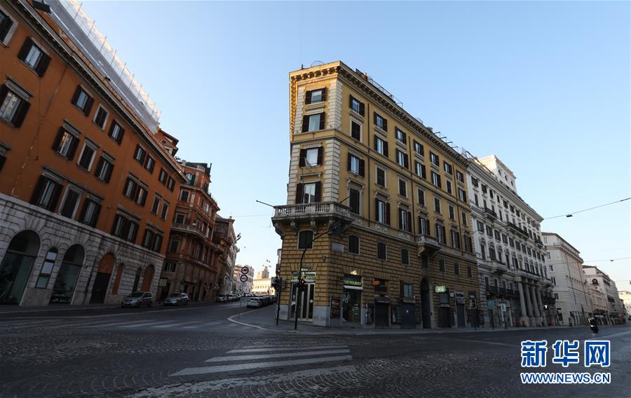 3月16日,在意大利首都羅馬,晚高峰時段的道路空曠無車。新華社記者程婷婷攝