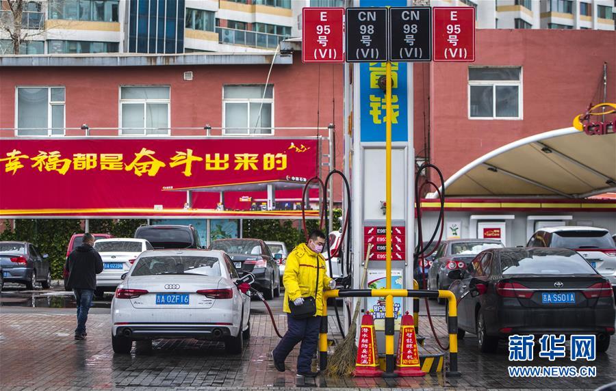 3月17日,車輛在吉林省長(zhǎng)春市一處加油站加油。 新華社記者 許暢 攝