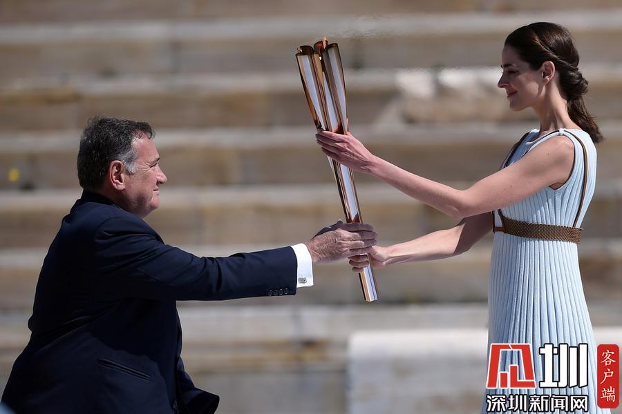 2020年3月18日,2020年?yáng)|京奧運(yùn)會(huì)火炬交接儀式在希臘雅典帕納辛奈科體育場(chǎng)舉行。