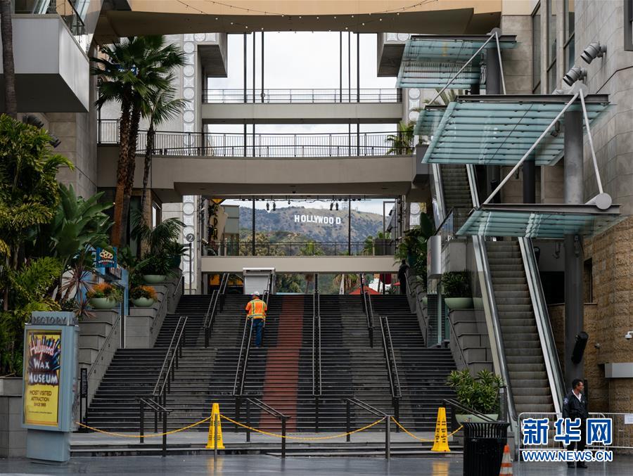 3月20日,在美國加利福尼亞州洛杉磯,星光大道上的一家商場(chǎng)停止?fàn)I業(yè)。 新華社發(fā)(錢衛(wèi)忠攝)