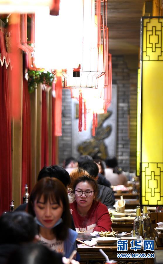 3月21日,在四川省成都市錦江區(qū)商業(yè)場街的一家火鍋店內,顧客在就餐。近日,在做好新冠肺炎疫情防控措施的基礎上,四川省成都市的火鍋店逐漸恢復營業(yè)。新華社記者王曦攝