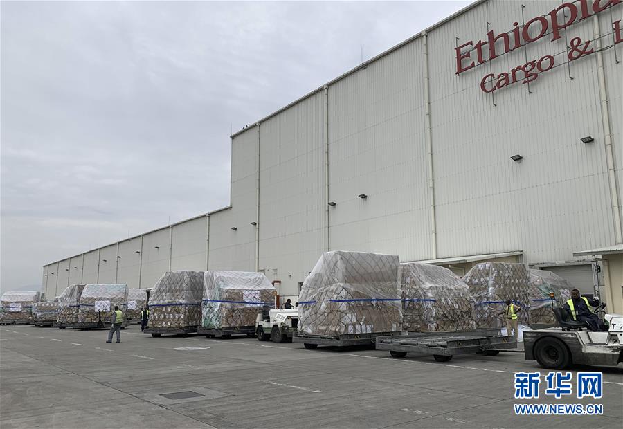 這是3月22日在埃塞俄比亞首都亞的斯亞貝巴國(guó)際機(jī)場(chǎng)拍攝的中國(guó)援助的抗疫物資。歷時(shí)10小時(shí)飛行,滿(mǎn)載著來(lái)自中國(guó)抗疫物資的埃航貨運(yùn)包機(jī)22日上午抵達(dá)埃塞俄比亞首都亞的斯亞貝巴的國(guó)際機(jī)場(chǎng),這是馬云公益基金會(huì)和阿里巴巴公益基金會(huì)捐贈(zèng)非洲的部分醫(yī)療物資,用于支援非洲54國(guó)抗擊疫情。新華社記者王守寶攝