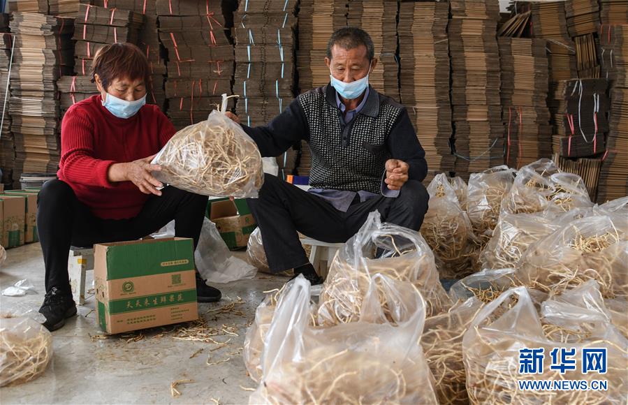 湖北當陽市壩陵辦事處群華村村民宋發(fā)林(右)和妻子在農(nóng)產(chǎn)品合作社包裝產(chǎn)品,準備通過電商外銷(3月21日攝)。近日,湖北當陽市農(nóng)業(yè)生產(chǎn)和農(nóng)產(chǎn)品加工加速恢復(fù)。截至3月19日,當陽市86家規(guī)上農(nóng)產(chǎn)品加工企業(yè)復(fù)工復(fù)產(chǎn)率為84.9%,51家農(nóng)業(yè)產(chǎn)業(yè)化重點龍頭企業(yè)有48家復(fù)工復(fù)產(chǎn),占比達94.1%。新華社記者程敏攝