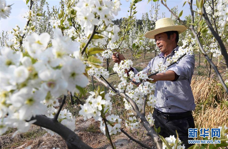 3月22日,云南省曲靖市沾益區(qū)炎方鄉(xiāng)炎方村的農民在果園里作業(yè)。春季里,云南省曲靖市沾益區(qū)鄉(xiāng)村果園里的桃花梨花競相綻放,景色秀美,吸引游人前來觀光。新華社記者楊宗友攝
