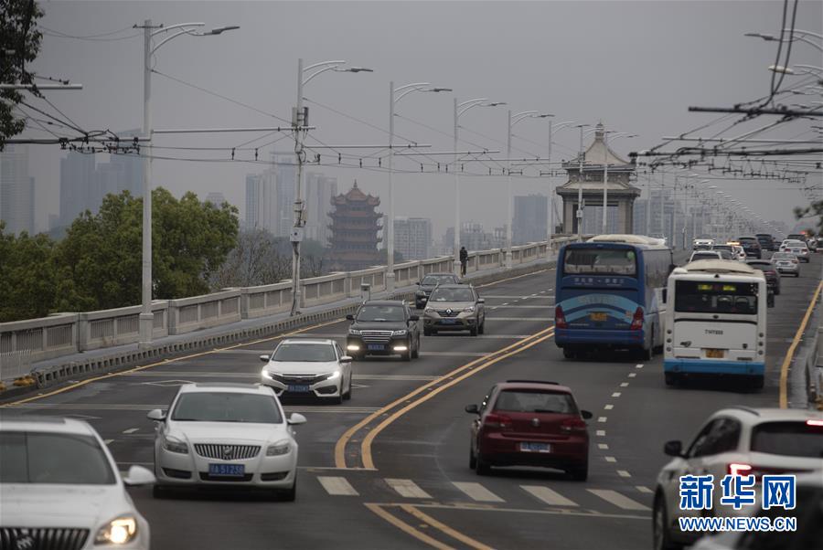 3月25日拍攝的武漢長江大橋上的車輛。新華社記者費茂華攝