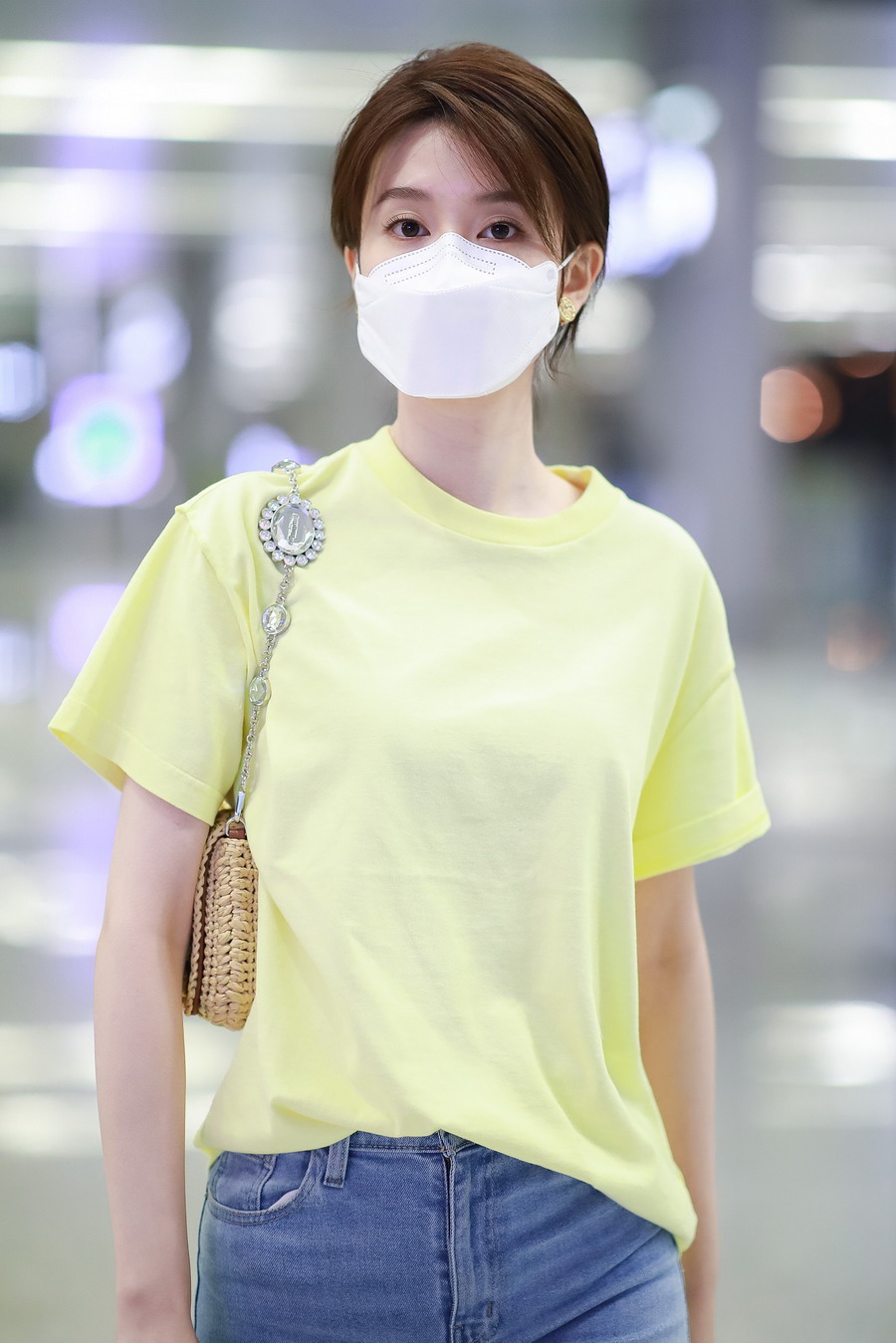 一秒入夏?喬欣私服穿搭堪稱“少女模板“ 黃色短T簡約清新顯元?dú)饣盍?/h1>