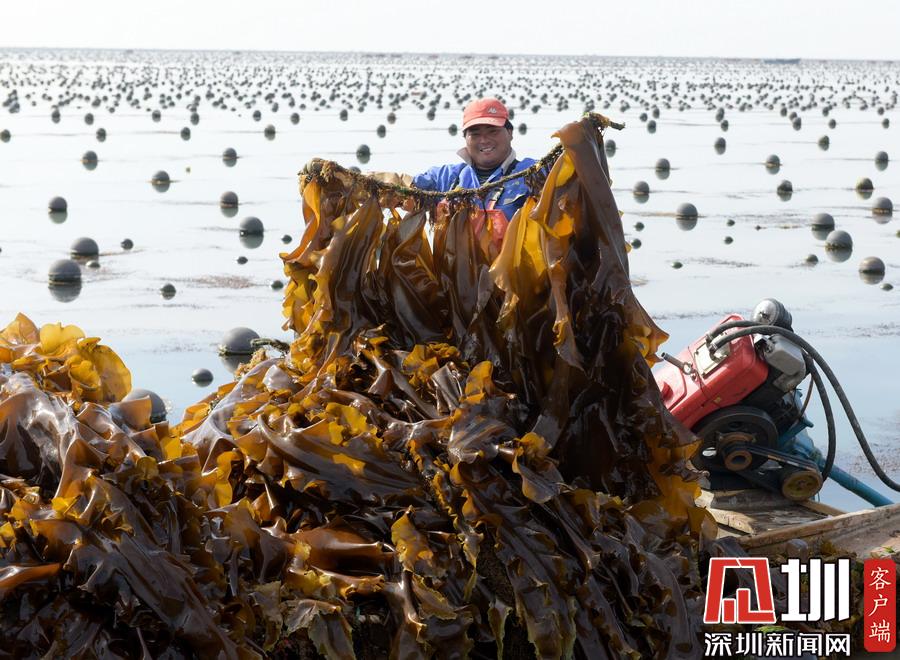 場(chǎng)面壯觀!山東威海收割海帶