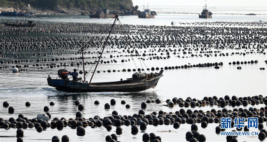 目前正是遼寧省大連市長??h扇貝和魚類收獲的季節(jié),長??h小長山島海域經(jīng)典國家級(jí)海洋牧場呈現(xiàn)出一片繁忙的豐收景象。