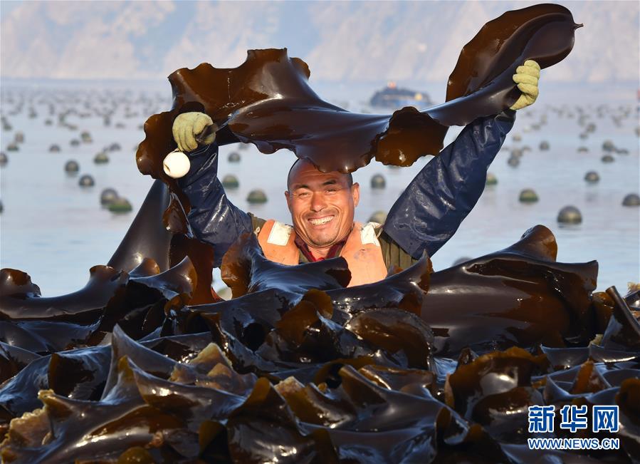 海島居民展示剛剛收獲的海帶(5月24日攝)。新華社記者朱崢攝