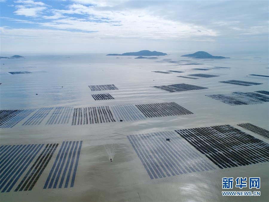 這是11月4日無人機(jī)拍攝的霞浦縣三沙鎮(zhèn)的紫菜種植區(qū)。近日,福建省霞浦縣沿海6萬畝紫菜迎來收獲季節(jié),漁民們出海收獲紫菜,海上田園一派繁忙豐收景象。新華社記者姜克紅攝