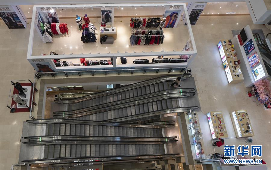 3月30日,在武商世貿(mào)廣場(chǎng),一位顧客乘坐滾梯。當(dāng)日,武漢市多家商場(chǎng)開(kāi)門(mén)迎客。新華社記者費(fèi)茂華攝