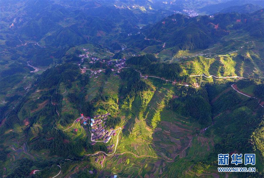 在融水苗族自治縣桿洞鄉(xiāng)黨鳩村下黨鳩屯,道路已經(jīng)修到家家戶戶門前(6月21日無(wú)人機(jī)拍攝)。新華社記者黃孝邦攝