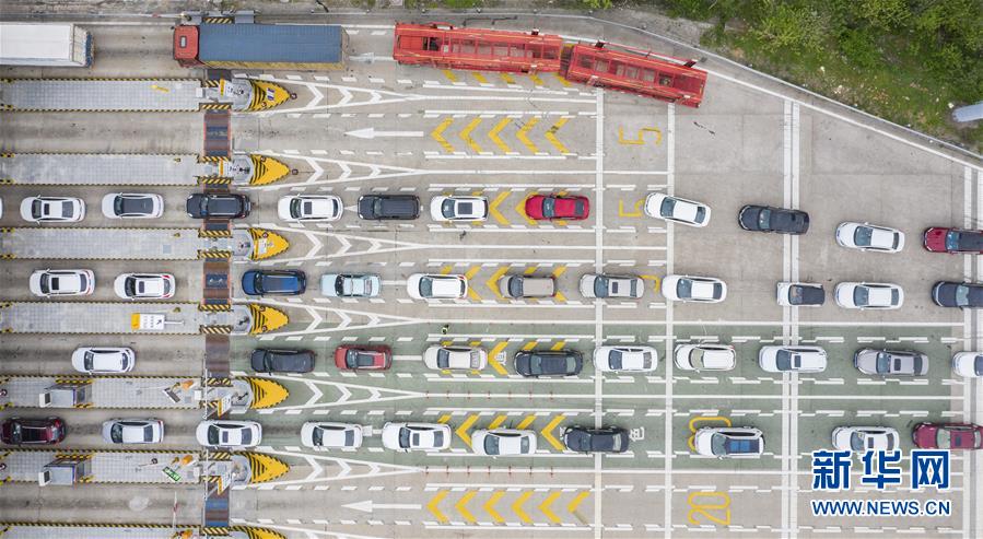 3月24日,在武漢西高速收費站交通卡點,返漢車輛排隊等候入城(無人機照片)。當日,湖北省新冠肺炎疫情防控指揮部發(fā)布通告說,湖北省除武漢市以外地區(qū),將于3月25日起解除離鄂通道管控,武漢市將于4月8日起解除離漢離鄂通道管控措施。隨著近日武漢部分企業(yè)逐漸復產復工,進入武漢的返城務工人員陸續(xù)增多,車輛在武漢西高速收費站交通卡點有序排隊返回武漢。工作人員對返城人員檢查體溫,并核查證明健康的“綠碼”和身份證后放行。新華社記者才揚攝