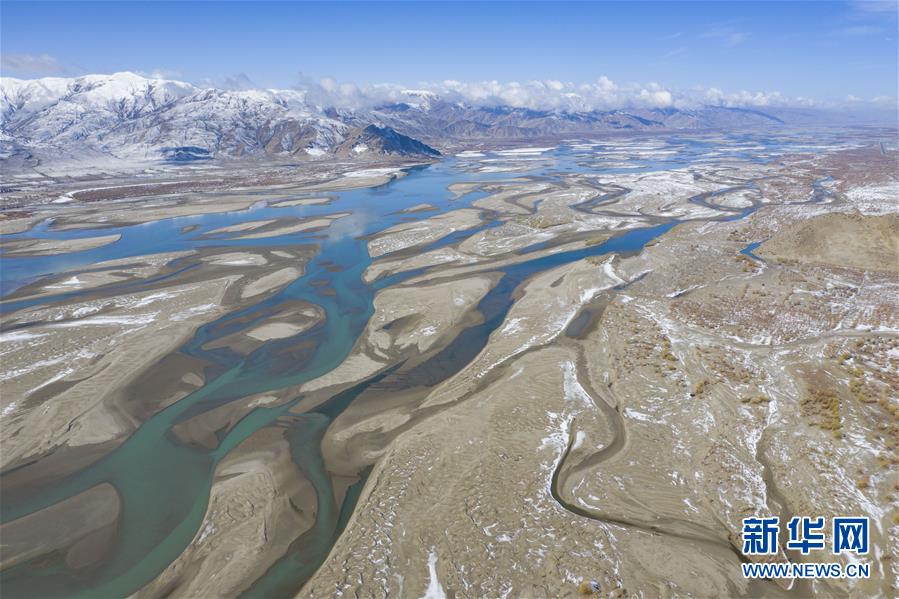 這是3月24日拍攝的雅魯藏布江雪景(無(wú)人機(jī)照片)。新華社記者普布扎西攝