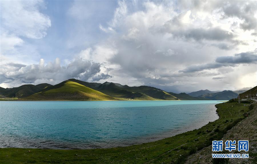 8月31日拍攝的羊卓雍錯(cuò)風(fēng)光(拼接照片)。新華社記者李鑫攝