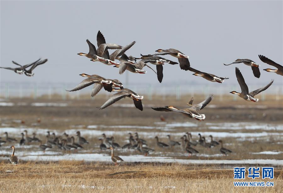 這是4月1日在張北縣黃蓋淖國家濕地公園拍攝的候鳥。 新華社記者楊世堯攝