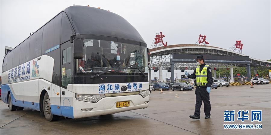 3月24日,在武漢西高速收費站交通卡點,執(zhí)勤民警準(zhǔn)備檢查車輛。新華社記者才揚攝