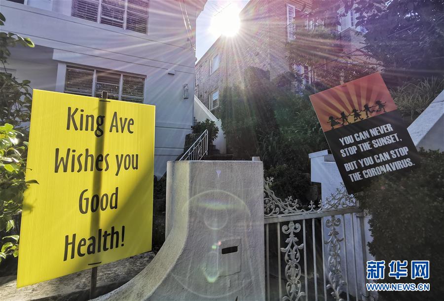 這是4月4日在澳大利亞悉尼費爾萊特社區(qū)拍攝的鼓勵人們樂觀抗疫的標語牌。新華社記者白雪飛攝