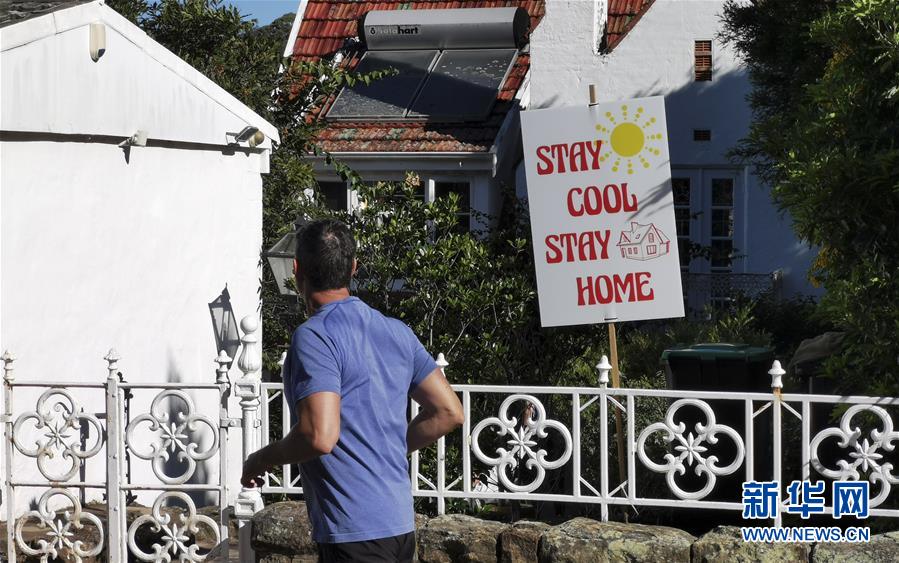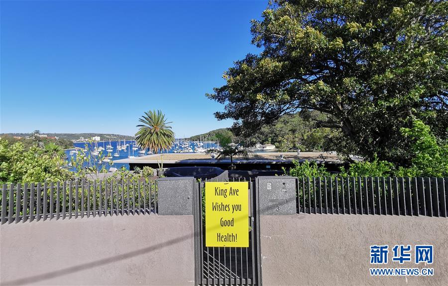 這是4月4日在澳大利亞悉尼費爾萊特社區(qū)拍攝的標語牌。新華社記者白雪飛攝