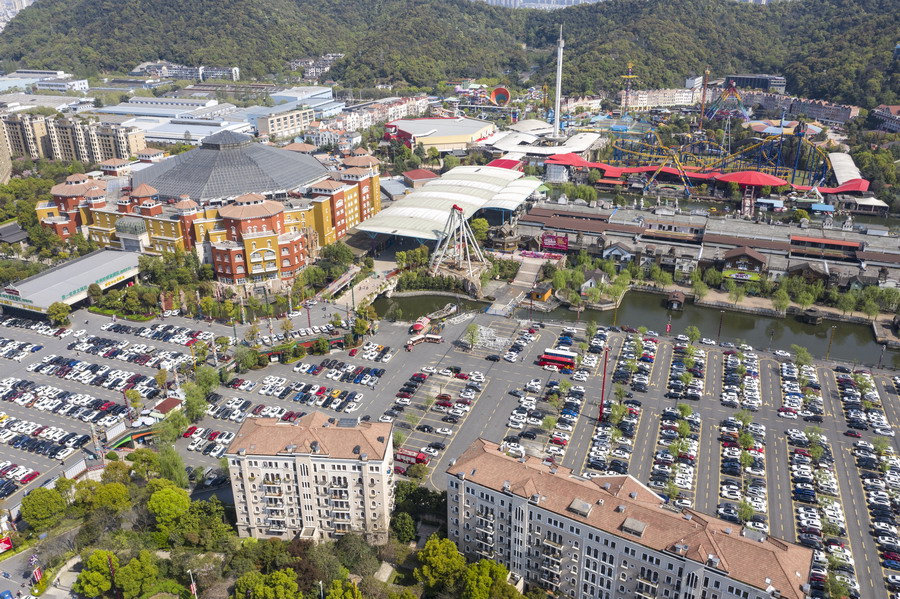 2019年4月6日,浙江杭州,清明小長假的第二天,迎來出游高峰,各大景區(qū)停車場都趨于飽和。圖為位于蕭山區(qū)的杭州樂園停車場,停滿了大大小小的車輛。