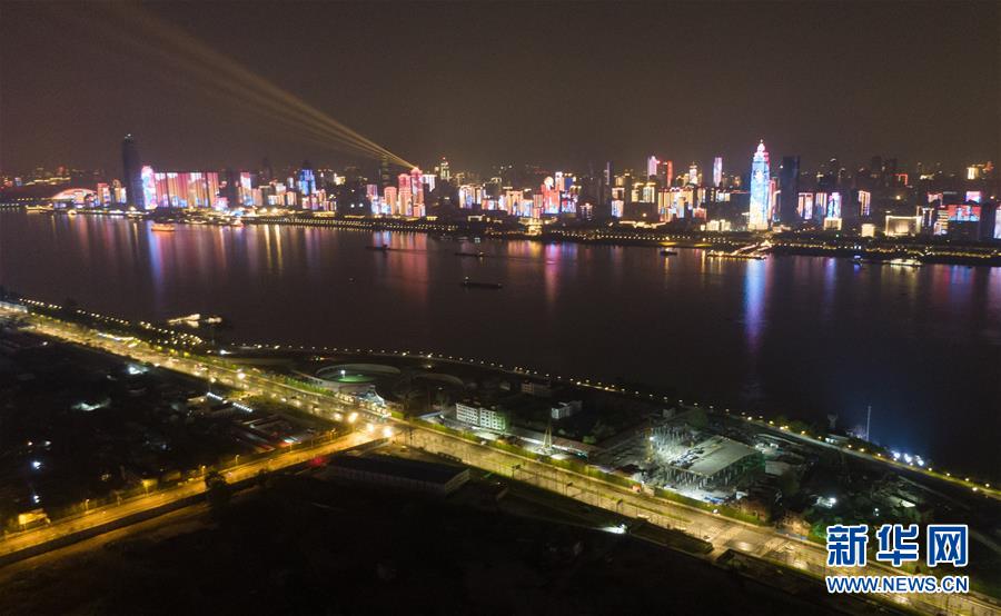 4月8日零時(shí)起,武漢市正式解除離漢離鄂通道管控措施,全市景觀照明開(kāi)啟(無(wú)人機(jī)拍攝)。新華社記者程敏攝