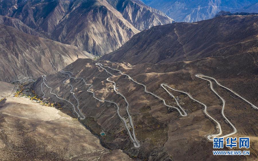 這是“怒江72拐”,該處位于西藏自治區(qū)昌都市八宿縣境內(nèi),是川藏線上一段艱險(xiǎn)與美景并存的山路(10月23日無人機(jī)拍攝)。全長2000多公里的川藏公路,從成都開始,一路向西到終點(diǎn)拉薩,在橫斷山脈、喜馬拉雅山脈和念青唐古拉山脈間蜿蜒盤旋,因海拔落差大,彎道眾多,形成天路奇觀。川藏公路1954年12月25日通車,65年來,國家對(duì)川藏公路進(jìn)行了大規(guī)模改造升級(jí),建設(shè)了眾多橋梁和隧道,行車條件得到明顯改善。新華社記者江宏景攝