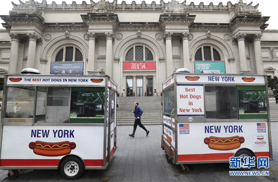 3月19日,在美國紐約曼哈頓,一名男子跑步經(jīng)過因新冠疫情而暫時閉館的大都會博物館。新華社記者王迎攝