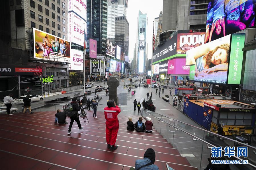 3月19日,人們在冷清的美國紐約曼哈頓時報廣場上參觀。美國約翰斯·霍普金斯大學發(fā)布的實時統(tǒng)計數(shù)據(jù)顯示,截至美國東部時間19日17時30分(北京時間20日5時30分),美國新冠肺炎確診病例累計13060例,死亡175例。受新冠肺炎疫情影響,紐約等疫情嚴重的地區(qū)執(zhí)行多項減少人口聚集的措施,昔日的鬧市如今已冷冷清清。新華社記者王迎攝