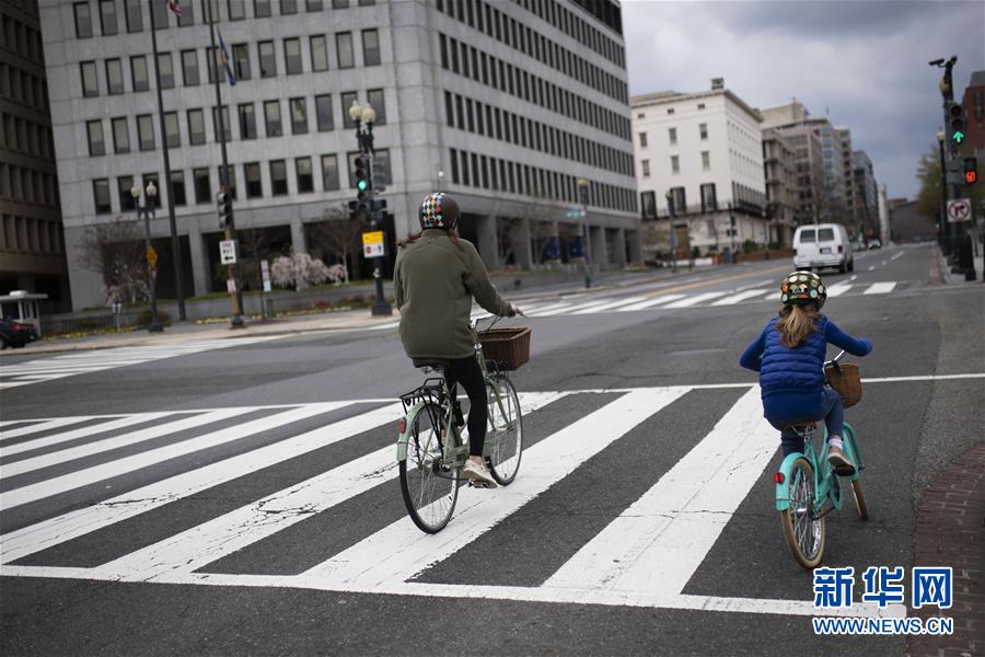4月8日,在美國首都華盛頓,市民在空曠的街道上騎行。美國約翰斯·霍普金斯大學8日發(fā)布的新冠疫情最新統(tǒng)計數(shù)據(jù)顯示,美國確診病例超過40萬例。美國目前是全球確診病例最多的國家。數(shù)據(jù)顯示,截至美國東部時間8日12時30分(北京時間9日0時30分),美國新冠確診病例升至401166例,死亡12936例。新華社記者劉杰攝
