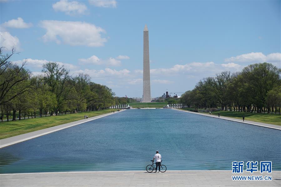 4月8日,在美國首都華盛頓,華盛頓紀念碑周圍游人稀少。新華社記者劉杰攝