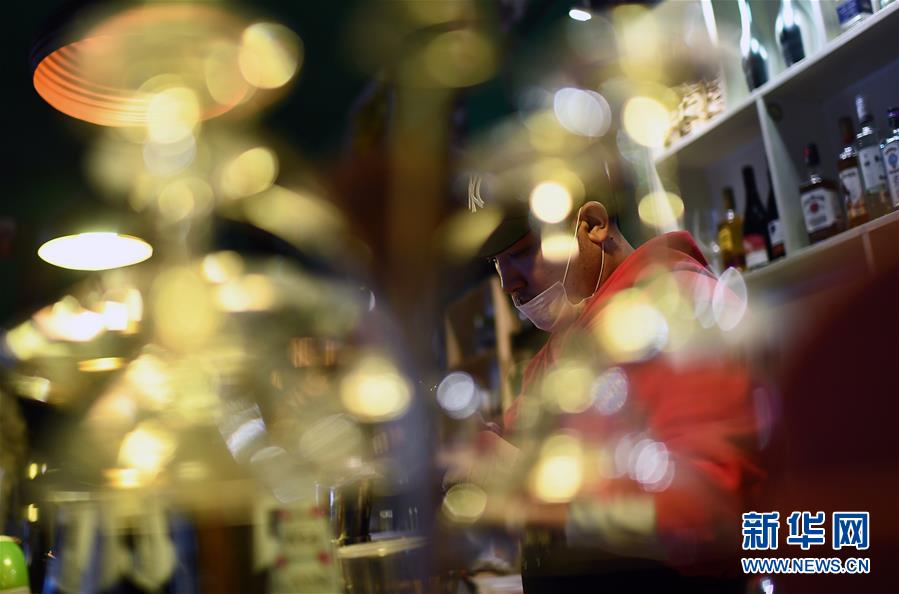 4月8日,才仁俄賽在餐廳內(nèi)調(diào)酒。新華社記者張宏祥攝