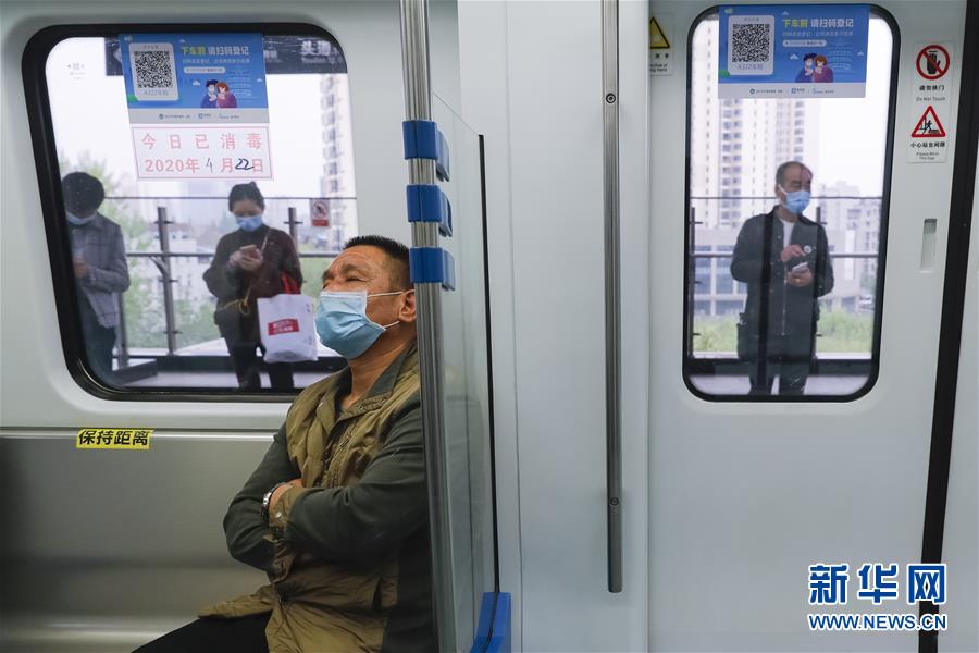 4月22日,乘客乘坐武漢軌道交通一號線出行。為建立與經(jīng)濟社會發(fā)展和疫情防控需要相適應的運輸服務保障機制,保障市民出行需求,從4月22日起,武漢城市公共交通有序恢復全線網(wǎng)運營。新華社記者沈伯韓攝