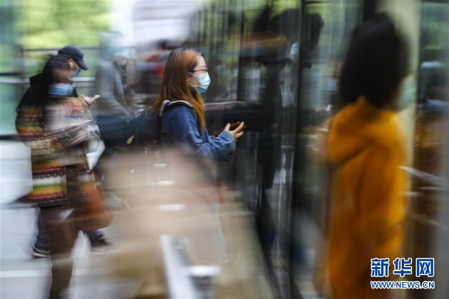 4月22日,在武漢軌道交通一號線,乘客排隊有序上車。為建立與經濟社會發(fā)展和疫情防控需要相適應的運輸服務保障機制,保障市民出行需求,從4月22日起,武漢城市公共交通有序恢復全線網運營。新華社記者沈伯韓攝