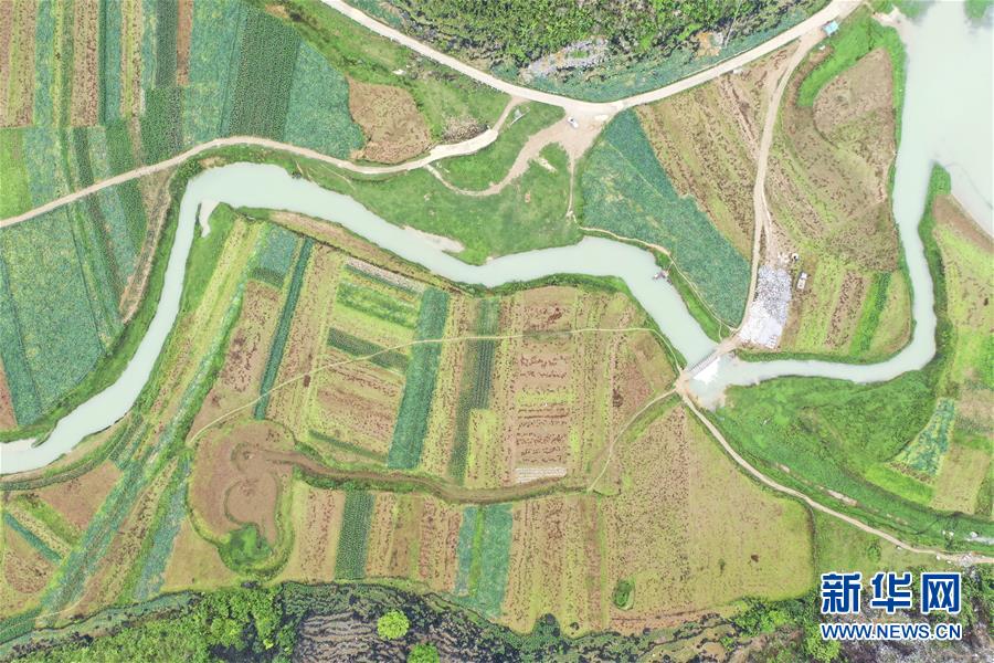 廣西隆安縣南圩鎮(zhèn)田園景色(4月23日攝,無人機(jī)照片)。新華社記者曹祎銘攝