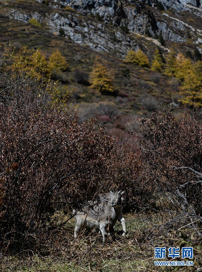 這是在四川亞丁國(guó)家級(jí)自然保護(hù)區(qū)拍攝的野生巖羊(2019年10月20日攝)。新華社記者唐文豪攝