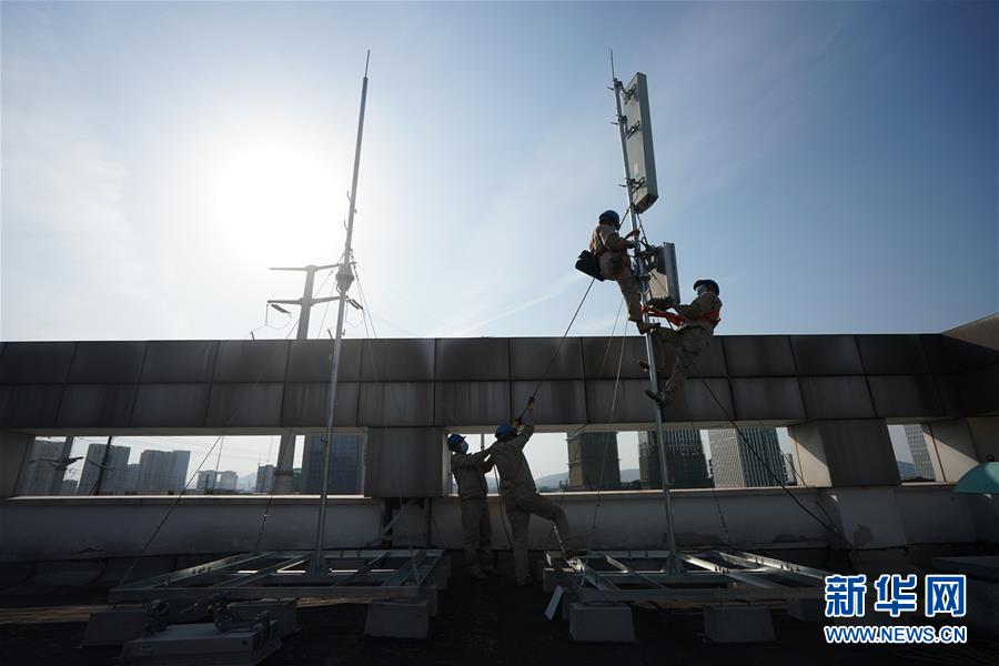4月25日,在南京220千伏城南河變電站屋頂,工人在架設(shè)5G設(shè)備。當(dāng)日,三大通信運(yùn)營(yíng)商的2座5G、3座4G基站建設(shè)工作在南京220千伏城南河變電站屋頂有序展開。在變電站內(nèi)建設(shè)基站可有效利用電網(wǎng)資源,縮短建設(shè)周期,節(jié)約建設(shè)成本。新華社記者季春鵬攝