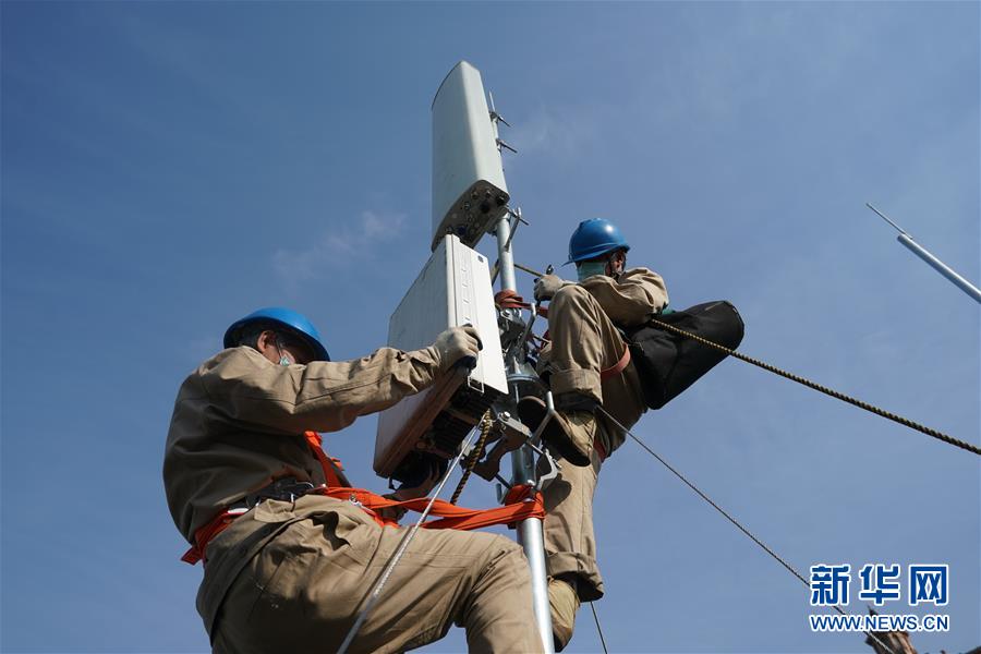 4月25日,在南京220千伏城南河變電站屋頂,工人在架設(shè)5G設(shè)備。當(dāng)日,三大通信運(yùn)營商的2座5G、3座4G基站建設(shè)工作在南京220千伏城南河變電站屋頂有序展開。在變電站內(nèi)建設(shè)基站可有效利用電網(wǎng)資源,縮短建設(shè)周期,節(jié)約建設(shè)成本。新華社記者季春鵬攝