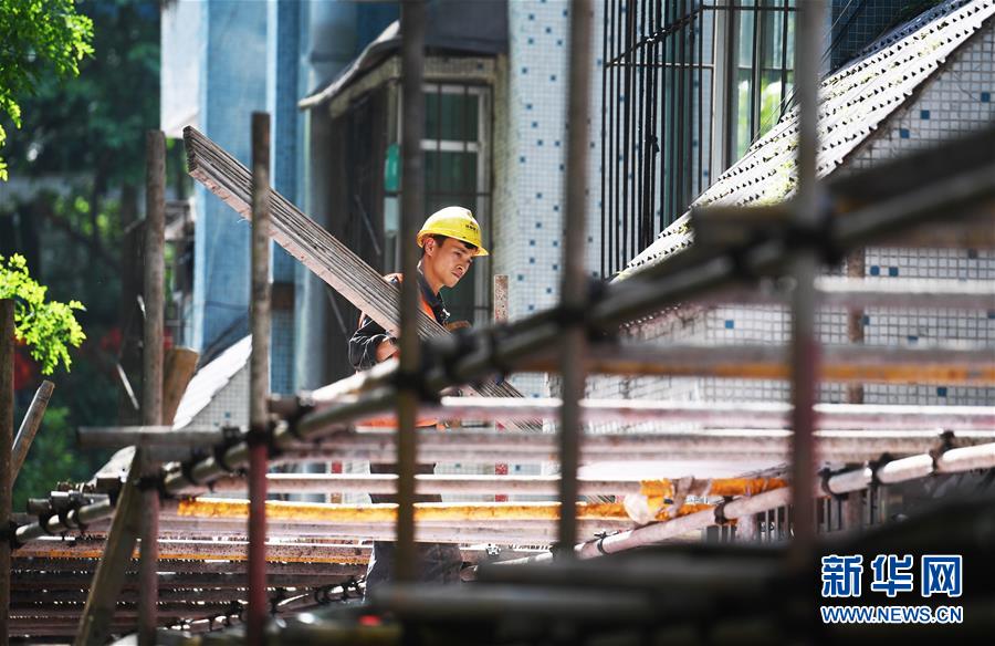 4月26日,工人在渝中區(qū)大溪溝街道雙鋼路社區(qū)改造提升項(xiàng)目施工現(xiàn)場(chǎng)作業(yè)。近段時(shí)間以來(lái),重慶市渝中區(qū)大溪溝街道加快推進(jìn)轄區(qū)內(nèi)老舊小區(qū)改造提升工作,從環(huán)境衛(wèi)生、房屋管理及養(yǎng)護(hù)、安防及車(chē)輛管理、綠化管理等方面進(jìn)行綜合改造提升,以增強(qiáng)社區(qū)居民的幸福感、獲得感、安全感。新華社記者王全超攝