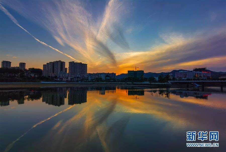 晚霞倒映在流經(jīng)翁源縣城的滃江(4月27日攝)。廣東省韶關(guān)市翁源縣地處南嶺南麓,是國(guó)家重點(diǎn)生態(tài)功能區(qū)。近年來(lái),經(jīng)濟(jì)發(fā)展曾經(jīng)滯后的翁源牢固樹立綠水青山就是金山銀山的發(fā)展理念,促進(jìn)生態(tài)保護(hù)和經(jīng)濟(jì)社會(huì)協(xié)調(diào)發(fā)展。新華社記者劉大偉攝
