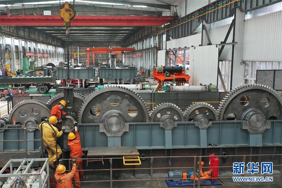 4月27日,工人在唐山市豐潤區(qū)一家起重設(shè)備制造企業(yè)生產(chǎn)車間工作。河北省唐山市豐潤區(qū)裝備制造業(yè)企業(yè)全面復(fù)工復(fù)產(chǎn)以來,各企業(yè)在做好疫情防控的同時,開足馬力加緊生產(chǎn),趕制訂單滿足需求,助推經(jīng)濟發(fā)展。新華社記者楊世堯攝