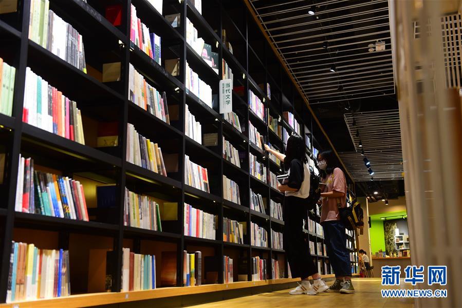 5月2日,讀者在江蘇無(wú)錫一家書店挑選圖書?!拔逡弧奔偃掌陂g,人們以多種方式放松心情、享受假日。新華社發(fā)(還月亮攝)