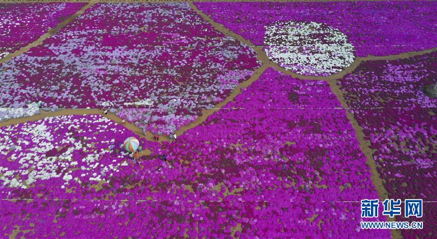 5月2日,市民在河北唐山遵化市小廠鄉(xiāng)一處農(nóng)業(yè)觀光園賞花游玩(無人機照片)?!拔逡弧奔偃掌陂g,人們以多種方式放松心情、享受假日。新華社發(fā)(劉滿倉攝)