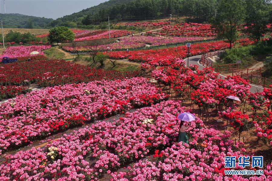 5月2日,游人在湖北省荊門市圣境花谷游玩(無人機照片)?!拔逡弧奔偃掌陂g,人們以多種方式放松心情、享受假日。新華社發(fā)(彭琦攝)