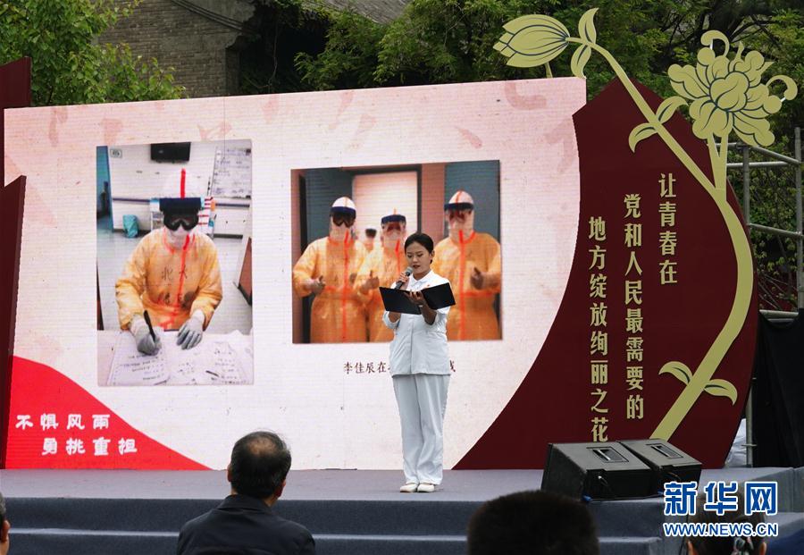 5月4日,北京大學(xué)援鄂醫(yī)療隊(duì)“90后”黨員代表在北大五四青春詩會朗誦。 當(dāng)日,北京大學(xué)通過與武漢大學(xué)、西藏大學(xué)、北京大學(xué)研究生支教團(tuán)聯(lián)合舉辦紀(jì)念五四運(yùn)動升旗儀式以及北京大學(xué)2020年五四青春詩會等活動,傳承五四精神,紀(jì)念五四青年節(jié)。 新華社記者 張晨霖 攝